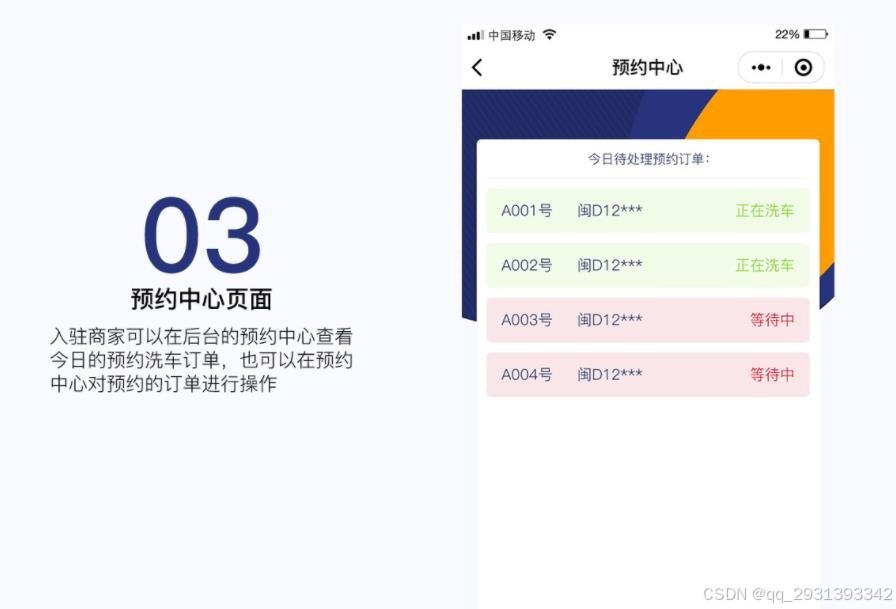 洗车小程序最基础也最核心的功能便是在线预约服务。系统通过智能算法实现: