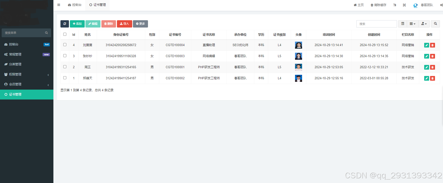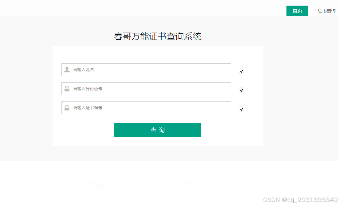通用证书查询工具源码系统是一套完整的Web应用程序,专为各类证书查询验证需求设计。该系统提供了一个用户友好的界面,允许用户通过输入证书编号或其他关键信息来查询证书细信息。源码的获取方式在春哥技术博客。
