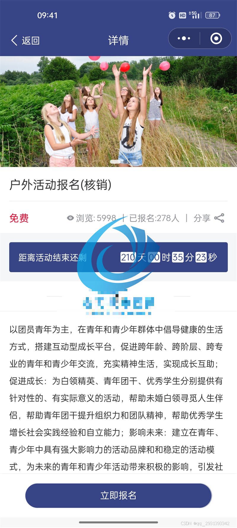 支付集成:支持微信支付、支付宝,适用于付费报名场景。