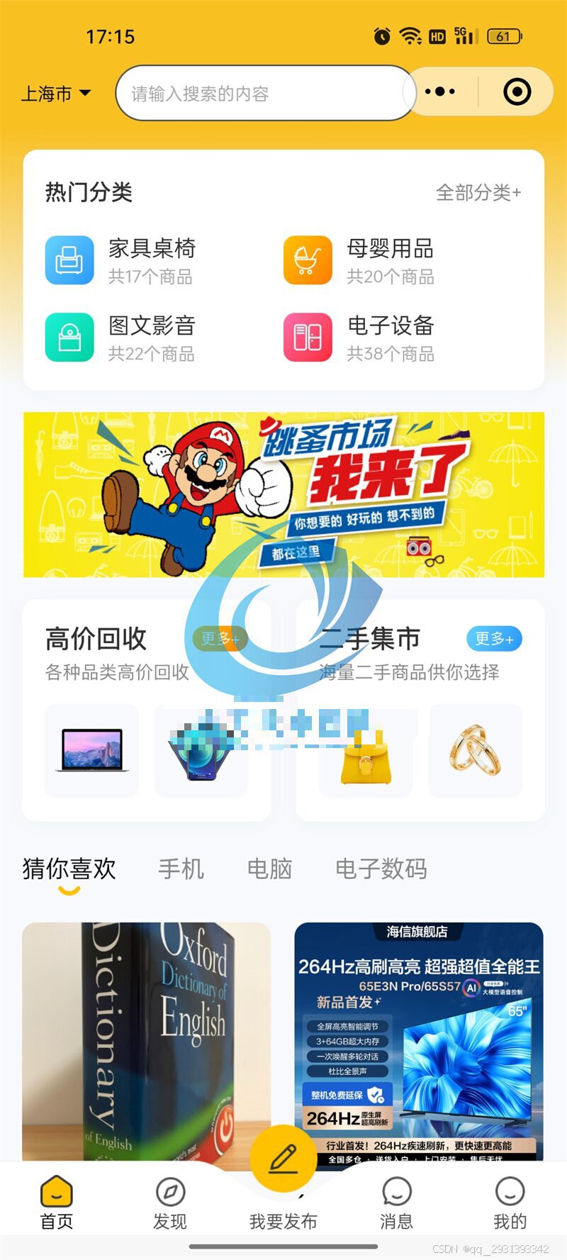 发布模块分为闲置发布和求购发布两种模式,满足不同用户需求: