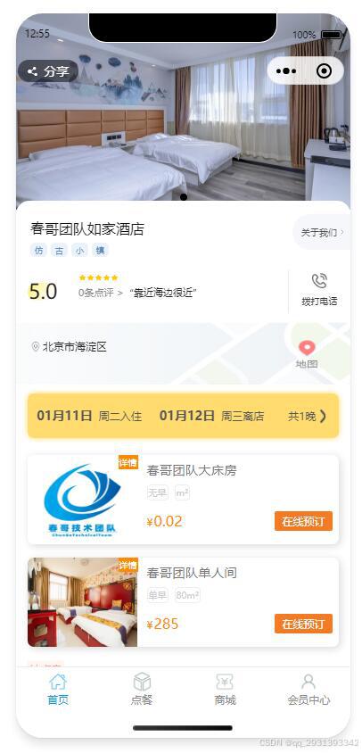 这款基于uni-app的多端酒店订房小程序源码系统是一款功能全面的酒店预订解决方案,支持微信小程序、H5网页、APP等多端运行,同时配备了完善的管理后台系统,为酒店经营者提供从客户预订到后台管理的全流程数字化工具。