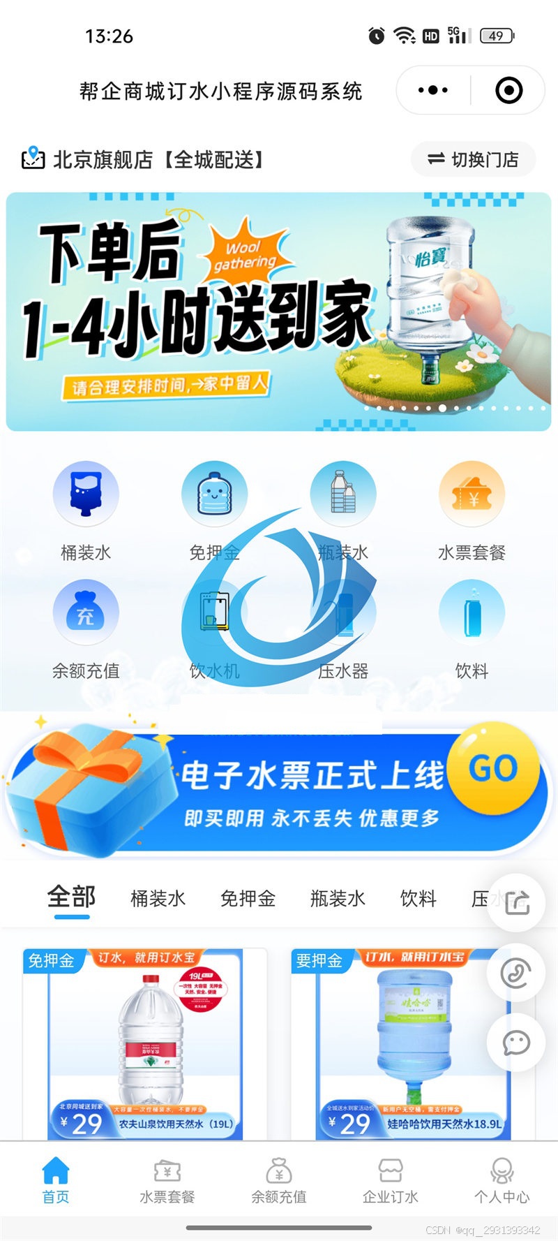 智能预约下单:支持“立即配送”和“预约配送”两种模式。用户可根据自己的时间安排,选择合适的送水时间,灵活性极高。