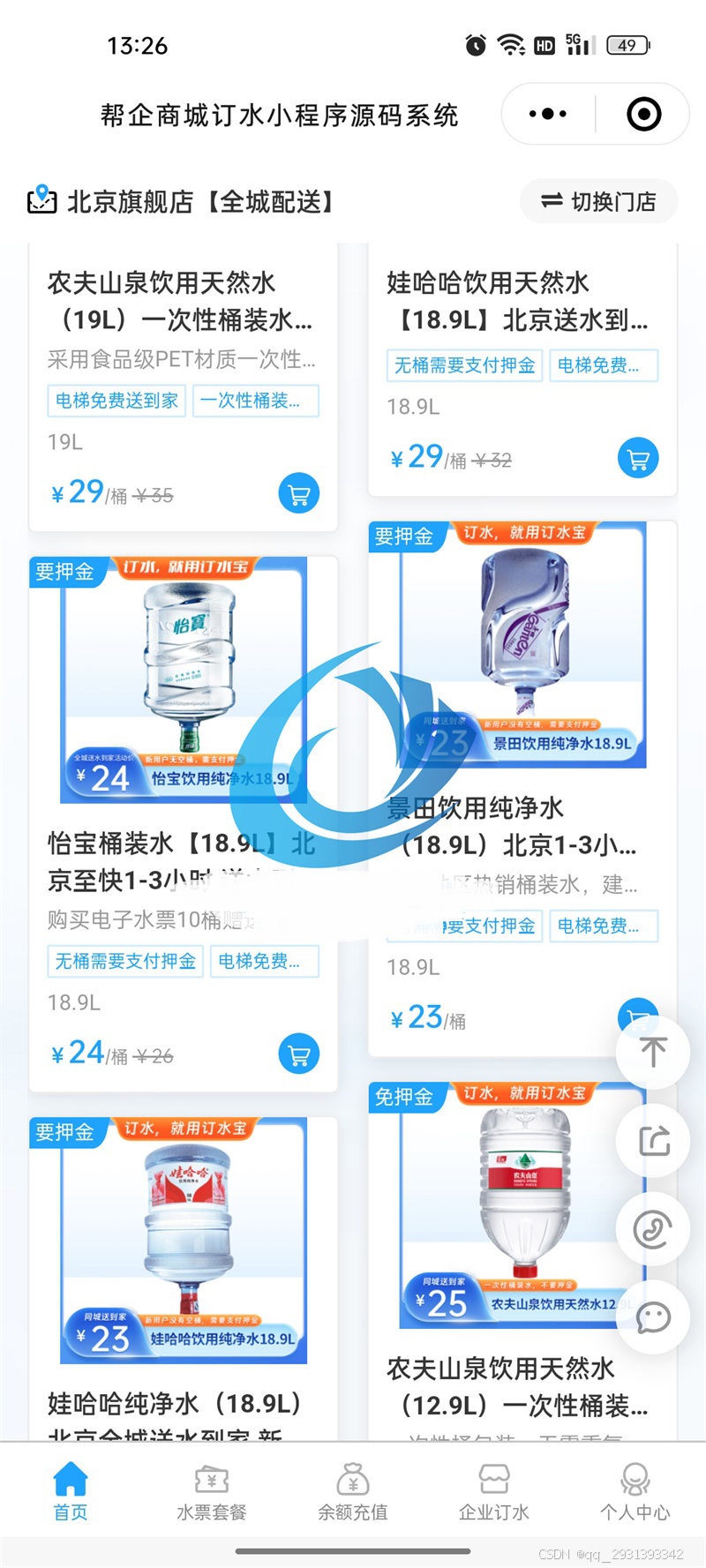 在线浏览与选购:清晰展示各种品牌、容量的桶装水、饮用水设备及周边商品,图文并茂,价格透明。